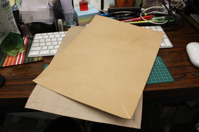 裏っかわにA4サイズをえんぴつでマーク。本当は鉄筆を使って跡をつけるのだけど、鉄筆持ってないし。