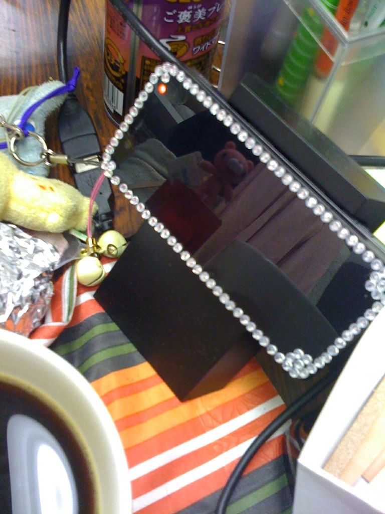 今日新しい液晶保護フィルムを貼ったついでに、ラインストーンも買ってデコってみました。