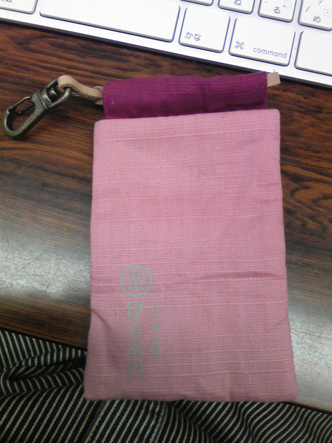事務所に戻って、私の宝箱(捨てようかどうしようか迷ってるもの入れ)を見てみたら、小さなキンチャクがありました。前に伊右衛門にぶら下がってた、オマケ。
