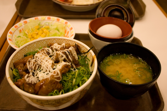 前にすき家にきたときに新メニューなのか特別メニューなのかわからんけど、「やきとり丼」てのがありまして。それがまたおいしかったんだ。さすがゼンショー。「なか卯」をやってるだけはある。鶏肉に妥協はないのか。