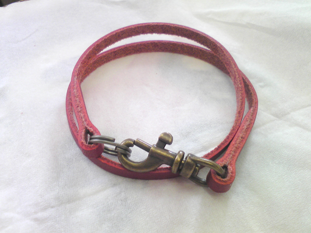 んじゃなんで「仮完成」なのか、というと、本体ベルトにDカンを付けるため折り曲げたところのベルトの端。ここは表からあまり見えないんだけど、断面が見えるとちょっとかっこわるいなぁ、と今写真を見て思ったので、ここに細いベルトを巻き付け、目隠し兼小物ひっかけ部位を作ろうと思います。