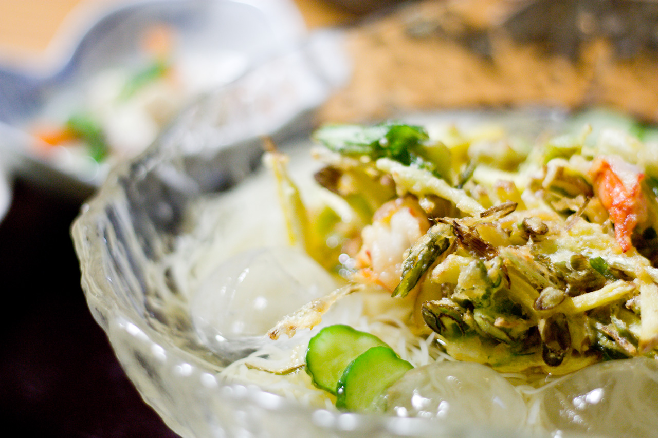 行ったのは夜だけど、そうめんならそうめんらしく「夏の昼間」をイメージしてみました。