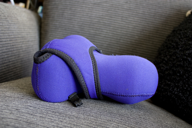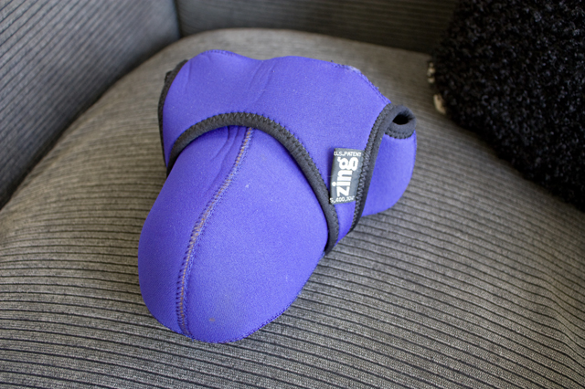 ウェットスーツと同じ素材で作られていて、ズームレンズをつけたまま収納できるもの。