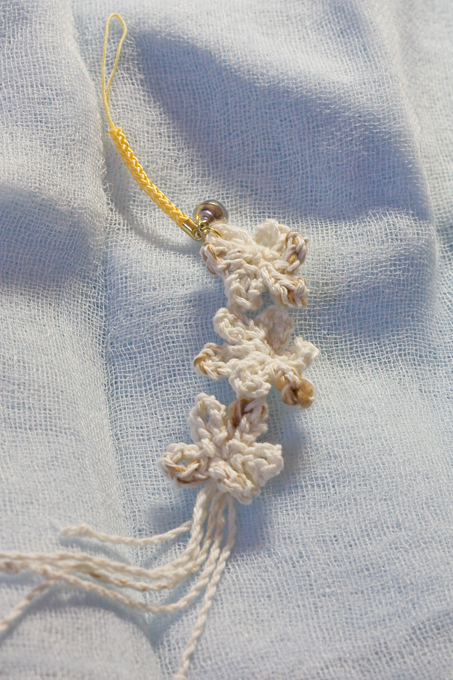 このヘアゴムで使ったモチーフが余ったので、勢いでストラップも作りました。
