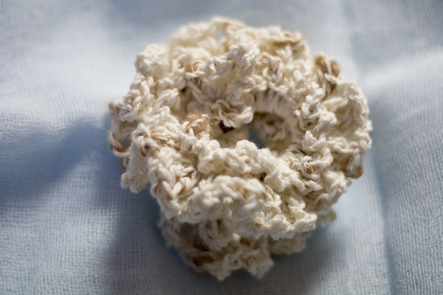 同じ毛糸でヘアゴムも作りました。