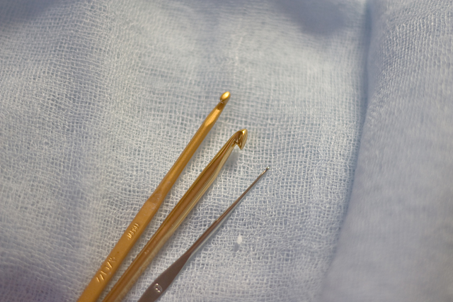 一番細いレース編み用のかぎ針はまだ未使用。