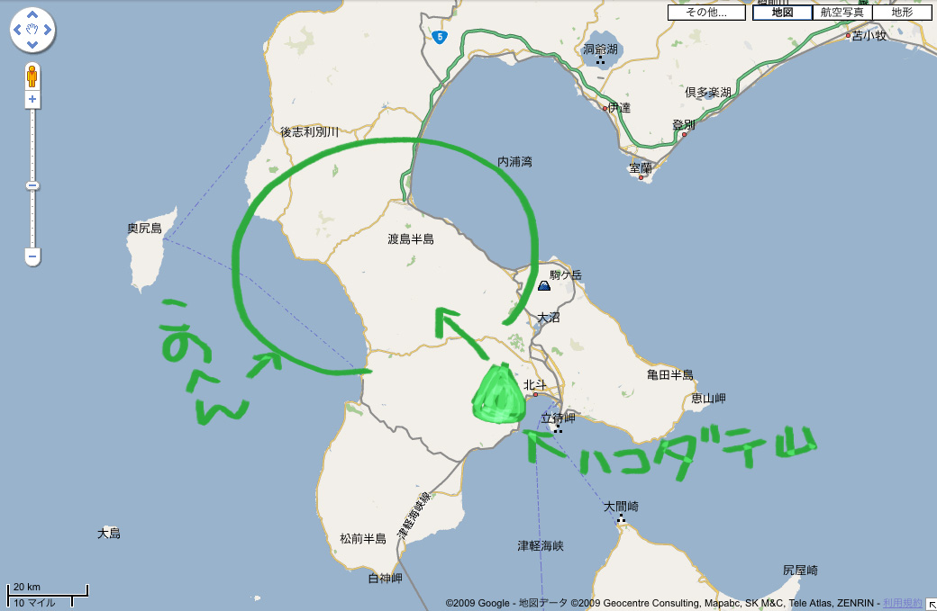 函館を経由するときに地図を見て、何か違和感は感じていました。