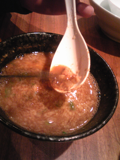 んで、 お連れ様のつけ麺スープに割りスープ入れて、おいしくシメ。