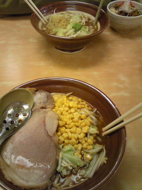 そんでもってコーンの甘みがスープに溶けて、ノーマルの味噌とはひと味違った感じ。できればここにバターものっけたかったけど、一応ダイエット中なのでパス。