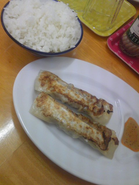 1枚目の写真は、無料でついてくるご飯と餃子。