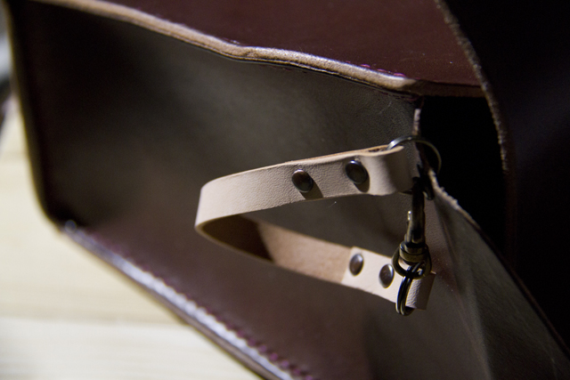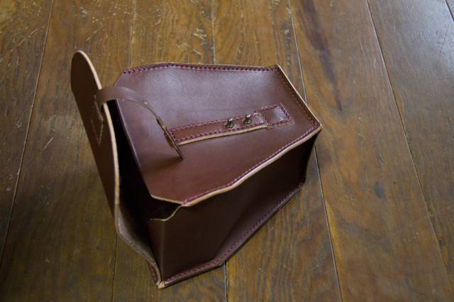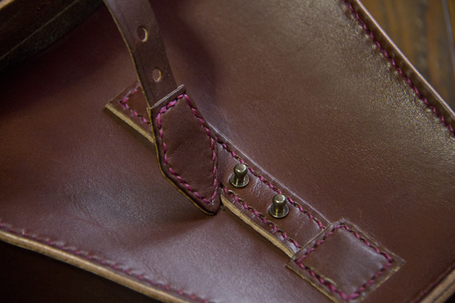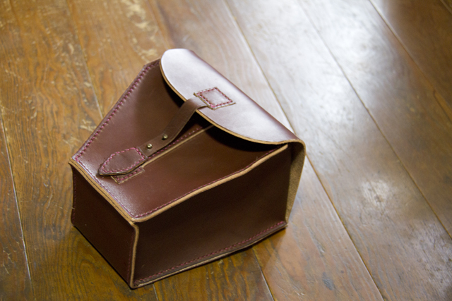 本当は裸のヌメ(最後の画像の取っ手の革)で作ろうかなーと思ったのですが、以前つくったカメラストラップと革と糸の色を合わせました。