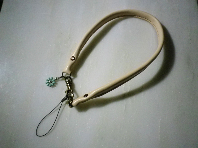 おつこや用にこれをちょっとアレンジして、チョコレート色の革を合わせてコンビなストラップも作ってみよかと考え中。