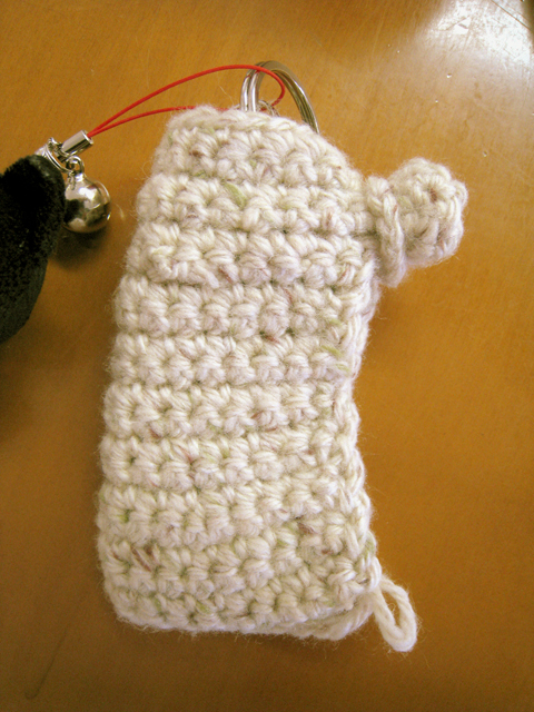 こま編みだからそんなに伸び縮みも隙間があいたりもしないんで、このまま小銭入れには使えると思いますがー。