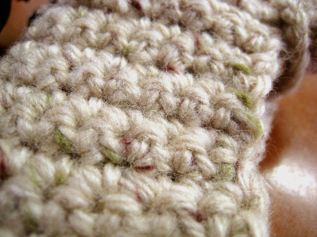 この毛糸は撚り糸をさらになってあるっぽい糸なので、サラリとした質感。