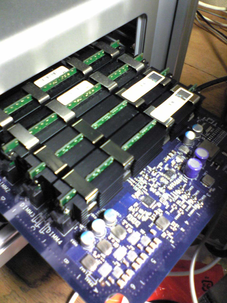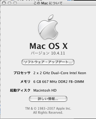 PC◎Mac Pro Xeon 2×2GHz/6GBくらいのと、Mac mini 2.4GHz/8GB←new! ほどのもの。Proの方がサブマシン。てゆーかProとminiとどっちが処理早いのかわかんね感じ。